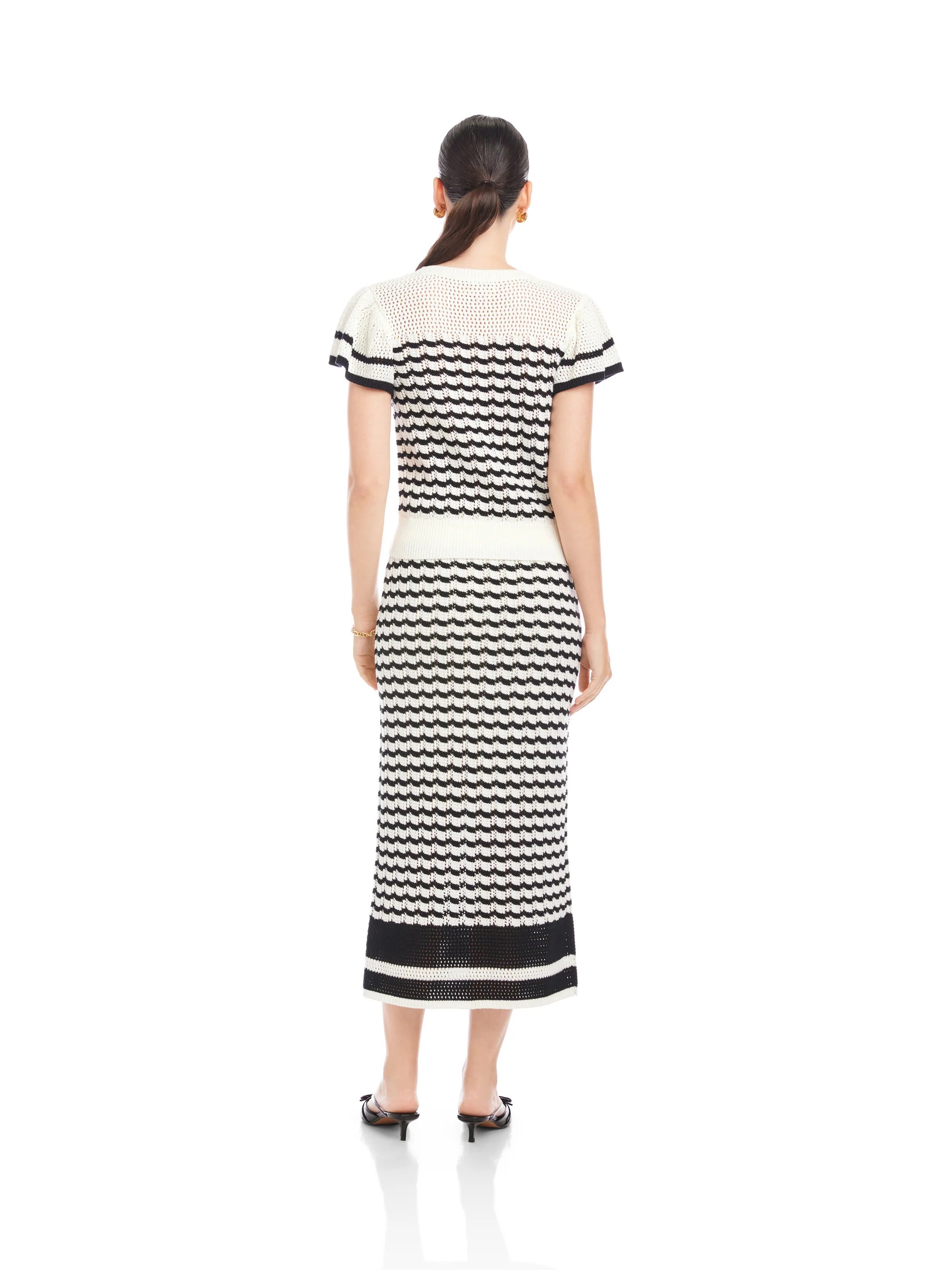 Designed with flutter sleeves and a subtly semi-sheer finish,